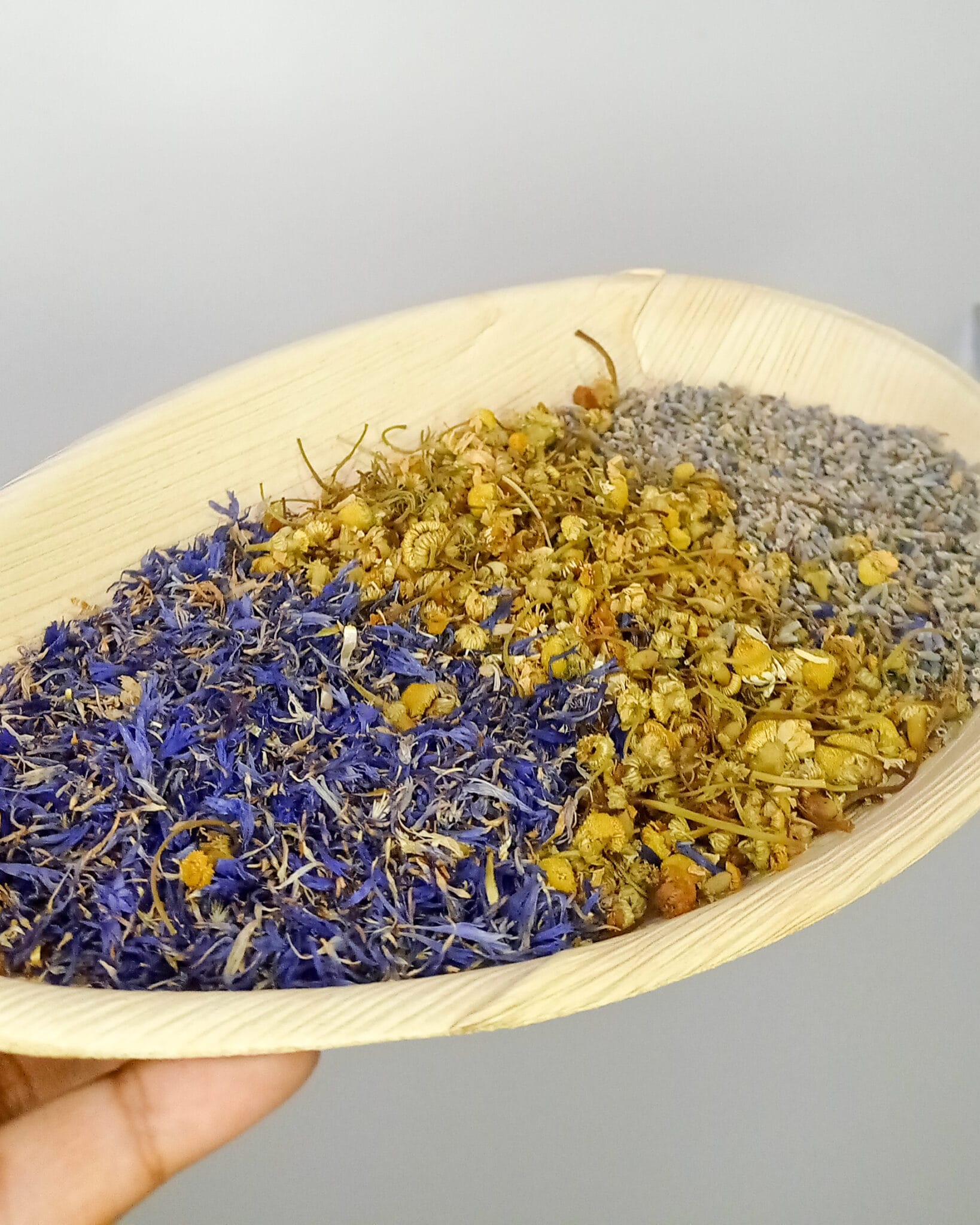 The Ultimate Forage Treat Box contains : Calming Chamomile & Lavender Forage, cornflower.