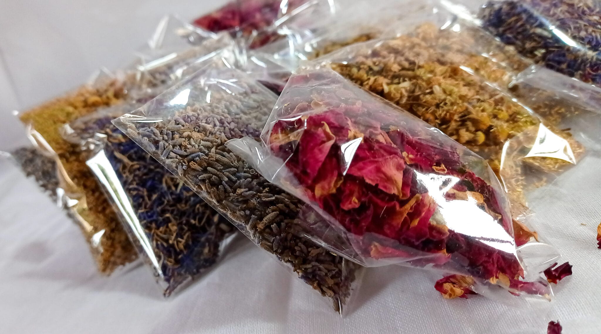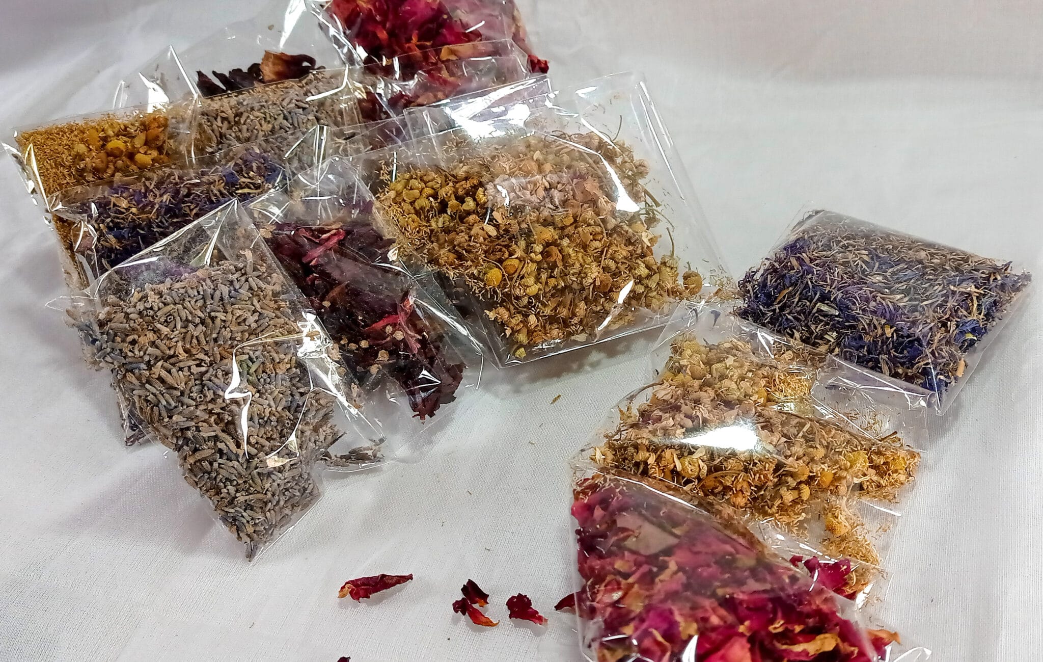 Hibiscus,rose, cornflower,levender, chamomile all match.