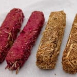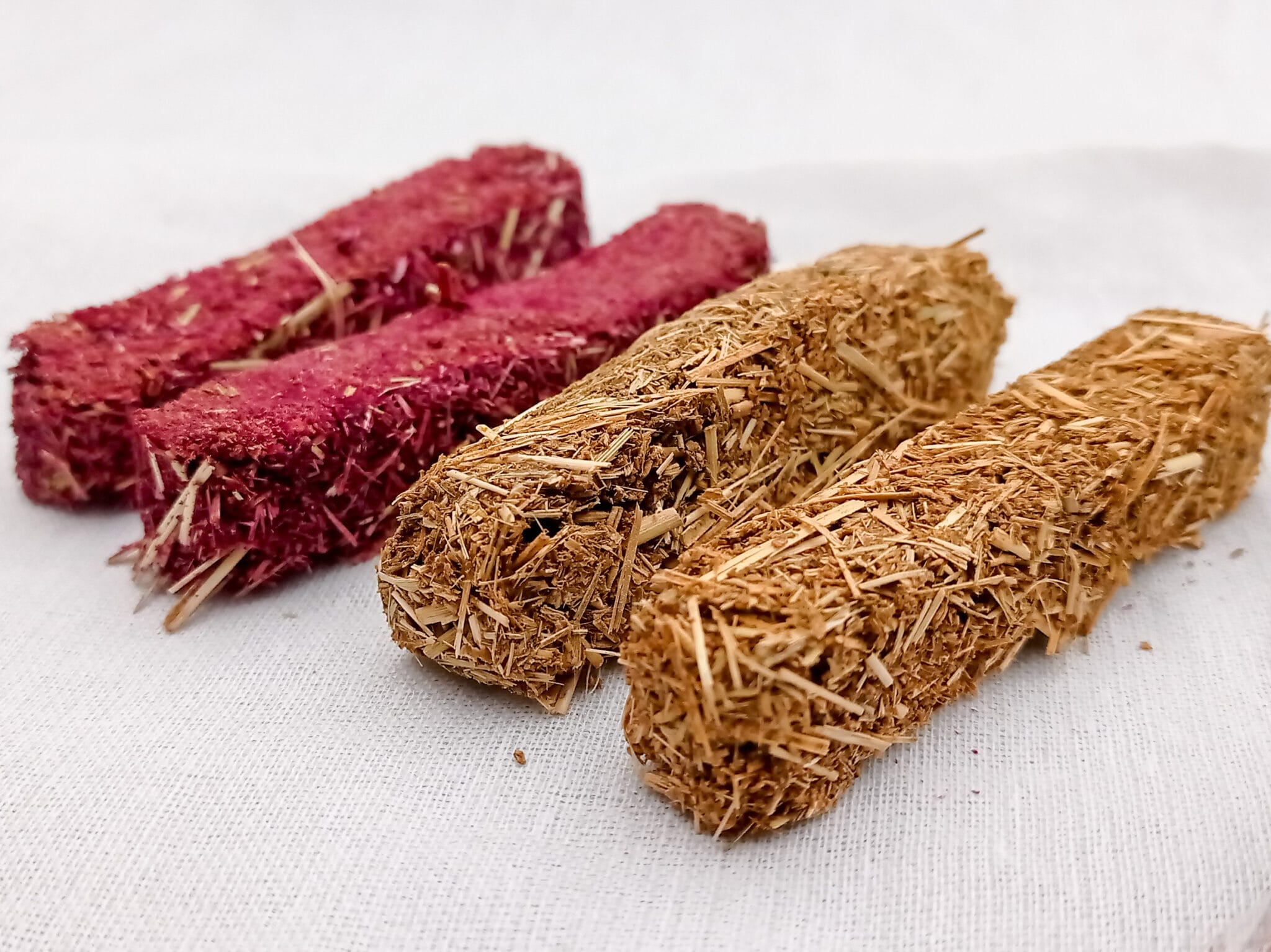 Ingredients: Timothy hay, oats, beetroot, mixed herbs.These chews  shaped as log.this add variety to your rabbits daily diet.