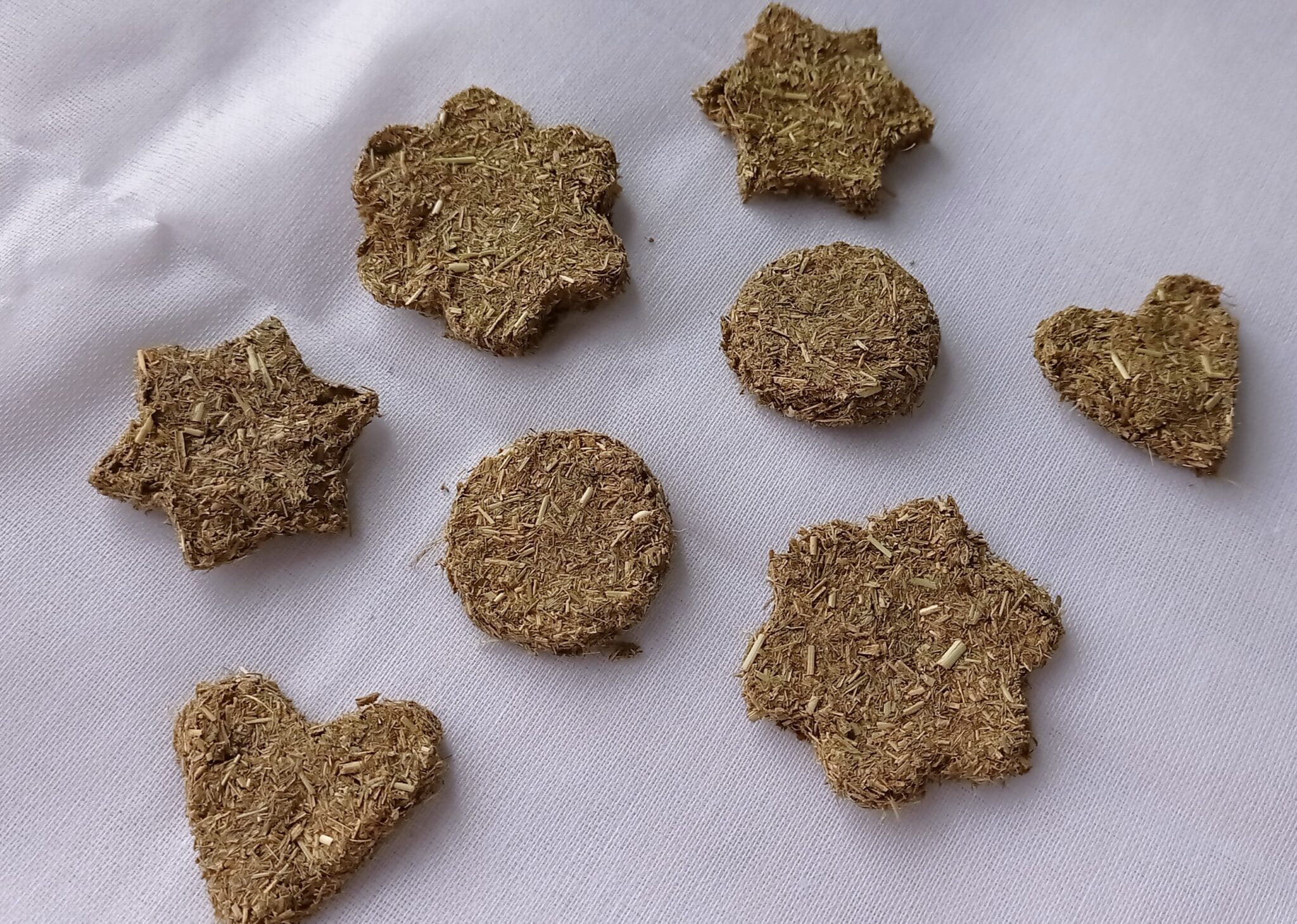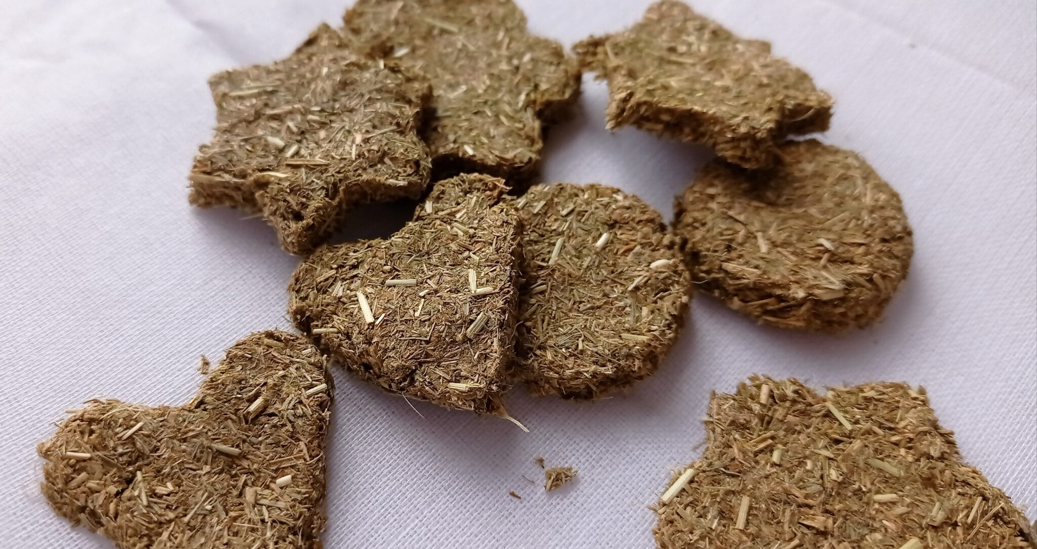 Ingredients: Timothy Hay, Banana. no oats, Flour or grains used. safe for Guinea pigs and bunnies.