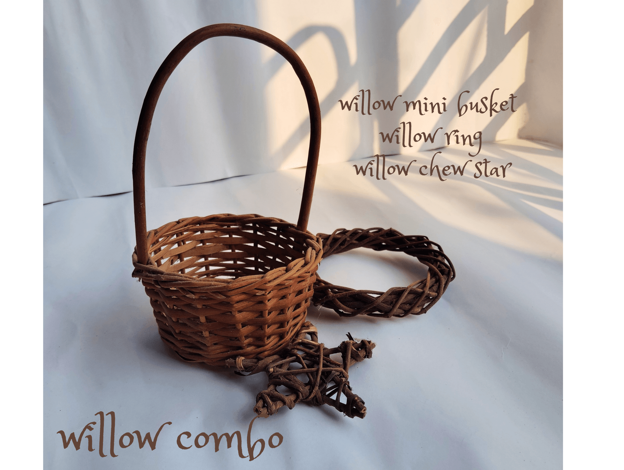 Our Willow Combo is a handmade, chew-safe set that keeps pets entertained while supporting their natural chewing instincts.
