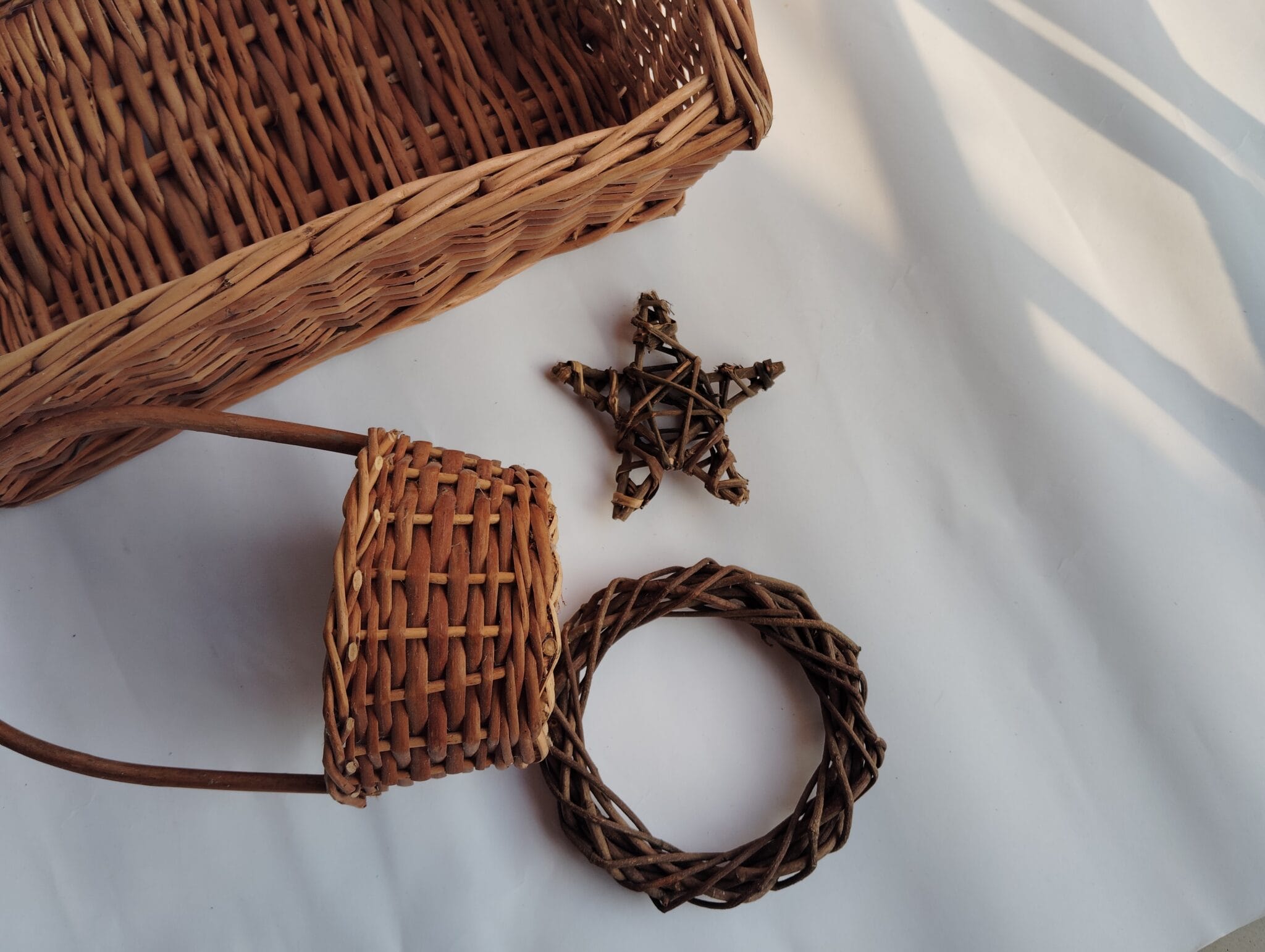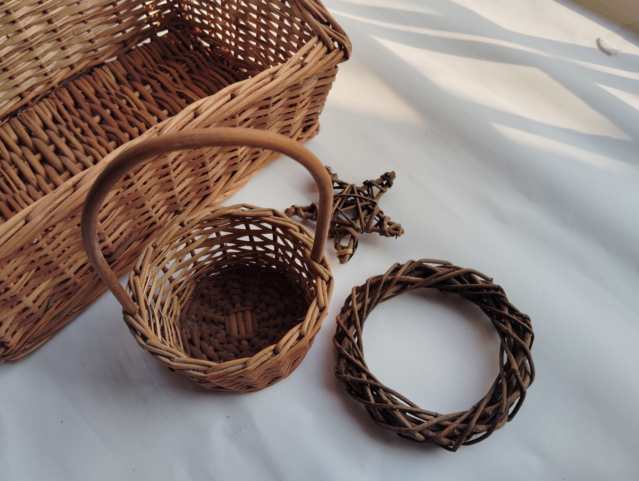 🌿 Willow Big Hay Basket &Mini Basket Willow Chew Star & Ring .